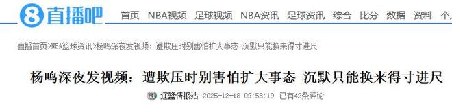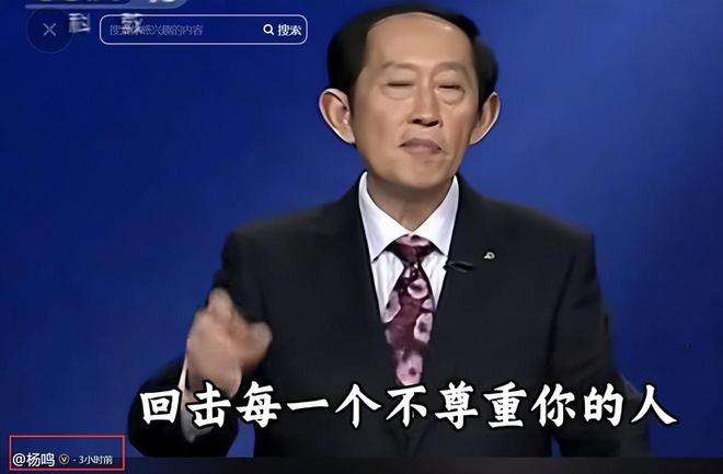 杨鸣转发视频的内容为:“你必须学会回击每一个不尊重你的人,遭遇欺压时不必害怕将事态扩大,对方的筹码正是赌你会沉默。沉默换不来理解,只能换来得寸进尺,你越是没脾气,别人越会对你苛刻,一次坚定的反击,就会有八成的几率会被尊重。亮出你的边界与锋芒,让他们看清挑衅的代价,那怕一次有力的回击,也足以宣告你并非弱者。你的底线越清晰,越是能逼退那些消耗你的人。”